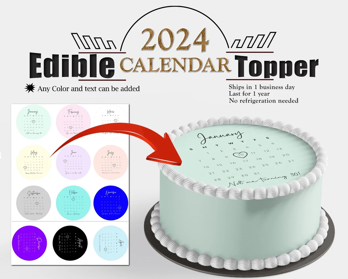 2024 Calendar Edible Round Cake Toppers. for Birthdays